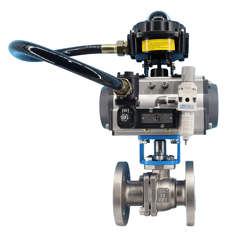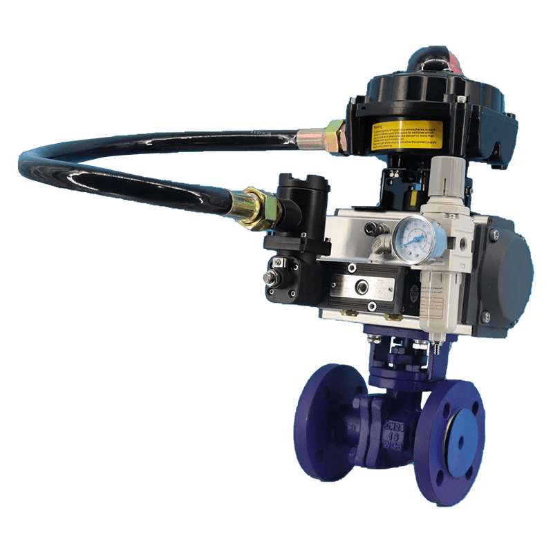 O型切斷球閥配用氣動、電動執(zhí)行機構(gòu),可適用于各種液體、氣體、漿料類流體及低壓蒸汽的自動切斷控制。